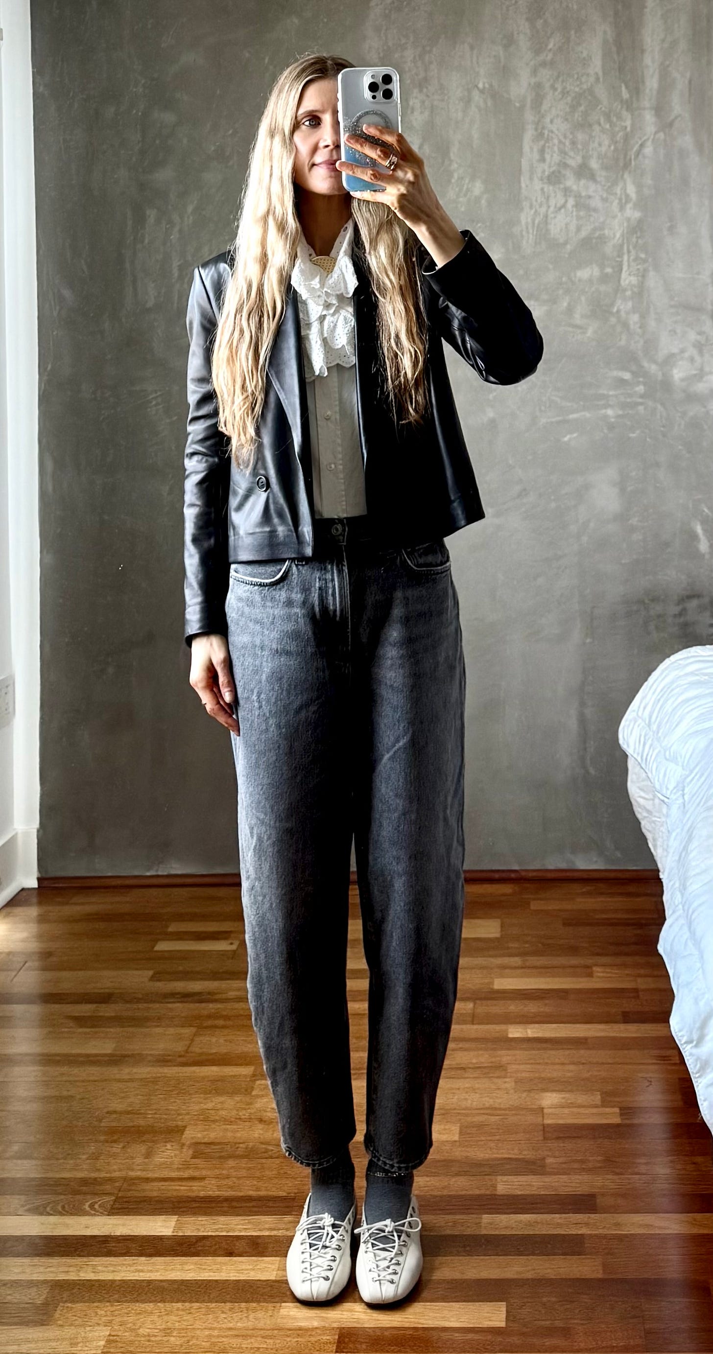 Did I love this look? Yes. Did I remember right before leaving the house that I was wearing a highly snaggable sheer top and delicate vegan leather jacket? Also yes.