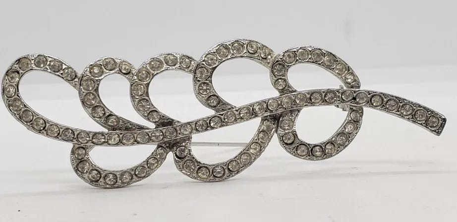 I’m now an official brooch person with a beautiful collection of mostly gold styles and wanted to branch out into silver. I’d been casually browsing eBay and Etsy for the right addition and when I saw this vintage brooch I knew it was the one for me.