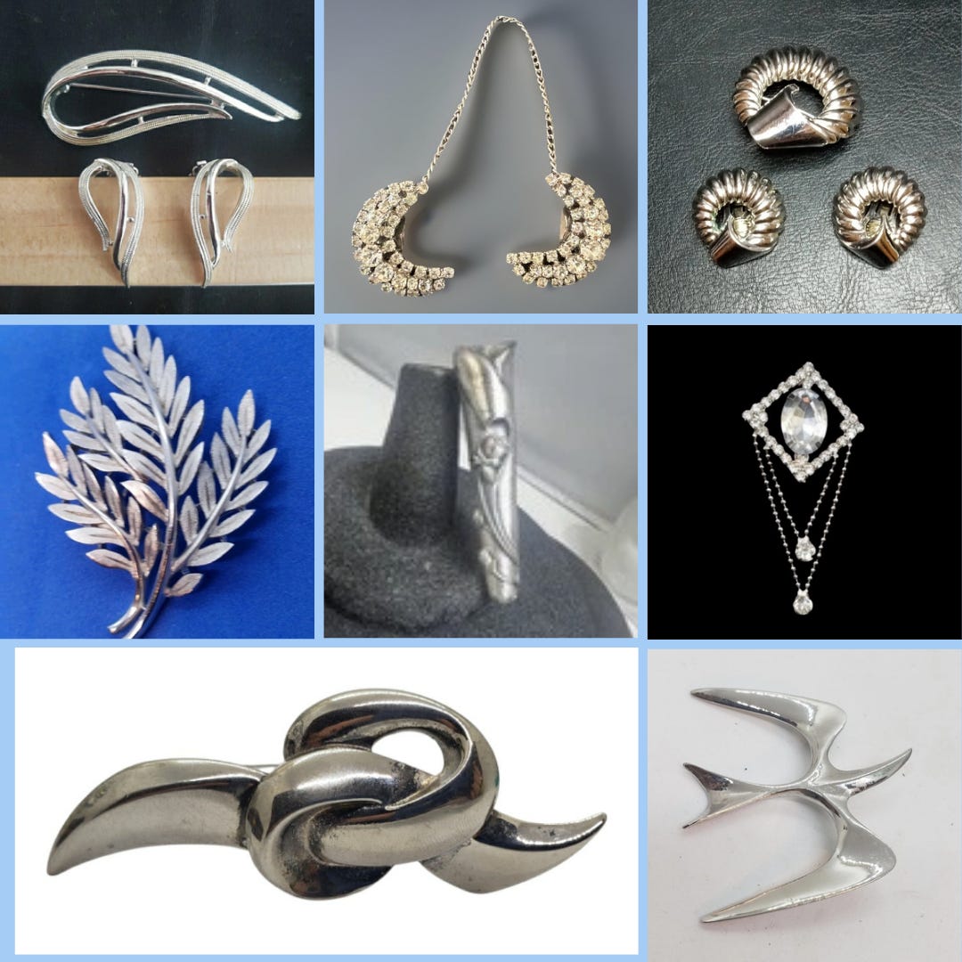 These are the brooches, pins, and clips on my secondhand wishlist. They’re all on eBay and Etsy with several pieces under $25. I’m partial to two of these and if they don’t get snapped up I think that means they’re meant for me.